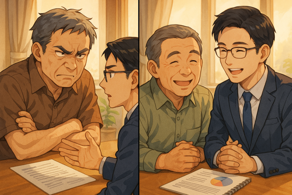 Masa kali pertama jumpa, mood klien ni tak baik. Dia dah lama tunggu financial plan dia tapi belum siap, dan sekarang dia kena tukar planner pula. Saya faham kecewa dia. Tapi saya jelaskan — untuk hasilkan pelan yang baik, saya masih perlu mula semula dengan kumpul semua data dan fahami situasi sebenar dia.