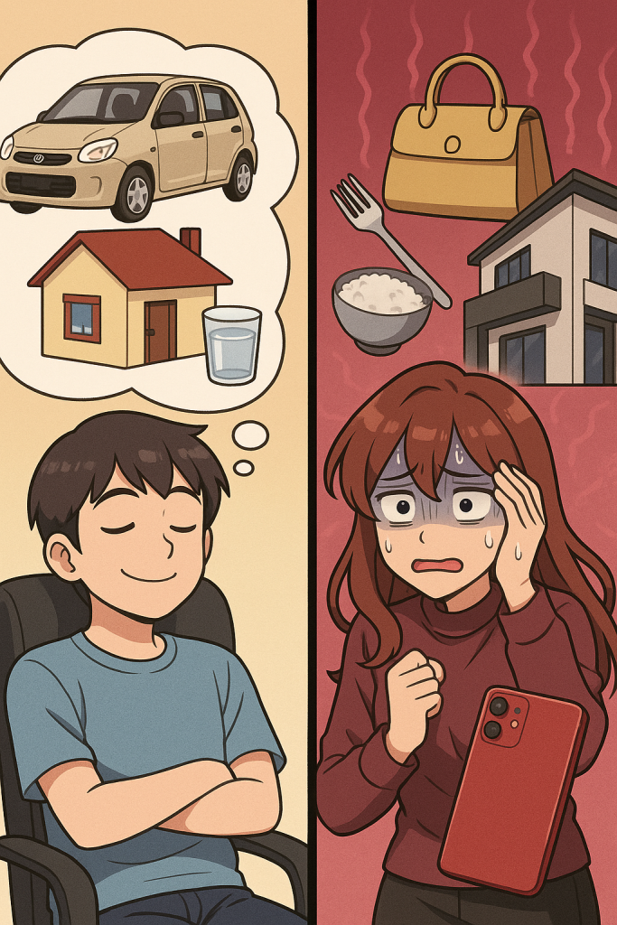 Kehendak: Benda yang seronok kalau ada, tapi hidup masih berjalan walaupun tak ada. Contoh: iPhone baru, kereta mewah, makan di restoran mahal setiap minggu, rumah besar di kawasan premium.