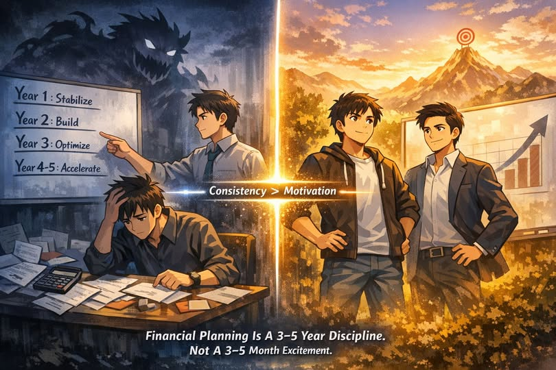 Untuk betulkan cashflow, susun semula hutang, bina emergency fund, disiplinkan simpanan, mula pelaburan, susun perlindungan, buat wasiat dan perancangan pusaka — realistically memang ambil masa 3–5 tahun untuk betul-betul stabil.