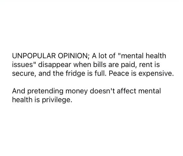Banyak masalah mental sebenarnya akan berkurang bila bil dah bayar, peti sejuk ada makanan, dan kita tak perlu risau pasal duit untuk hidup bulan ni.