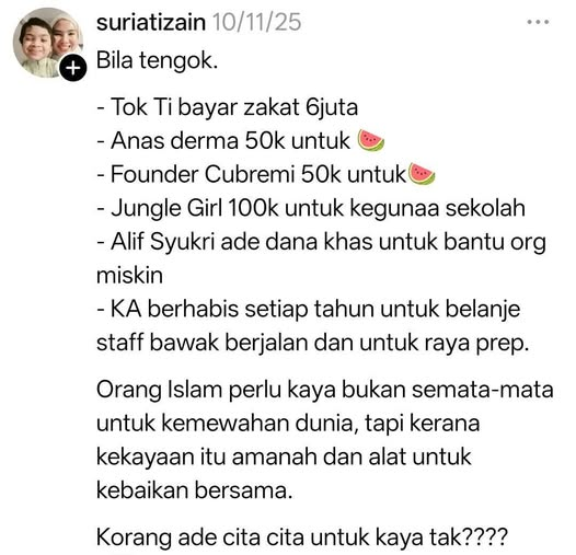 Yang jaga zakat, rajin bersedekah, suka berkongsi rezeki… bukan jadi makin susah. Selalunya, hidup dia jadi lebih lapang, lebih tenang, dan lebih senang.