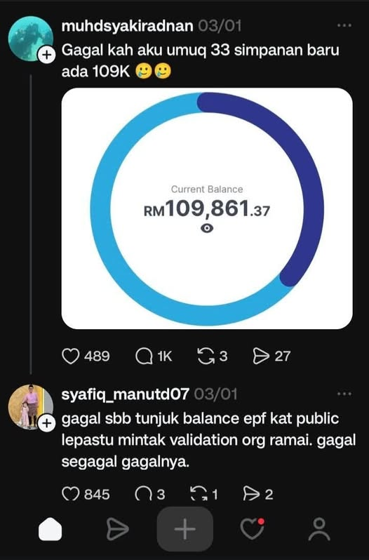 Jadi kenapa nak dapat validasi dari orang yang kita tak kenal berkaitan pencapaian kewangan kita. Kalau umur 33 tahun, dah ada simpanan yang cecah RM 100,000, tak kisah lah EPF ke cash ke, syukur banyak2 sebab ada ramai jer orang dekat luar tu, dah nak bersara pun RM 10,000 pun mungkin takde.